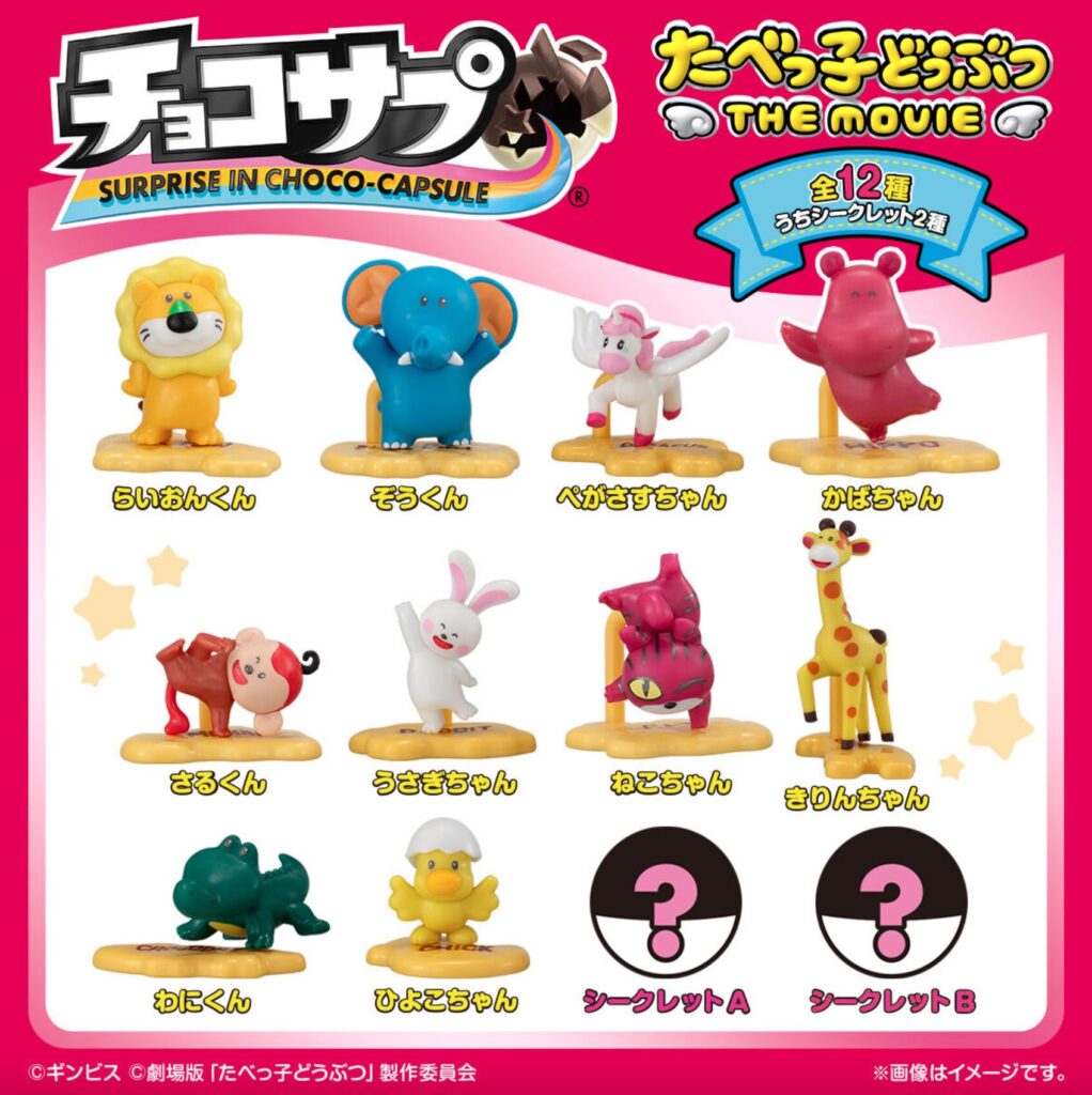 チョコサプ たべっ子どうぶつ THE MOVIEは、「たべっ子どうぶつ THE MOVIE」をモチーフにした彩色済みミニフィギュアと台座がランダム封入されています(全12種・うちシークレット2種)。