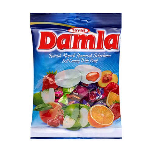 damla キャンディはトルコ発祥で着色料不使用、天然果汁使用の身体によいキャンディです。キャンディの中には天然果汁たっぷりのとろけるソースが入っています。