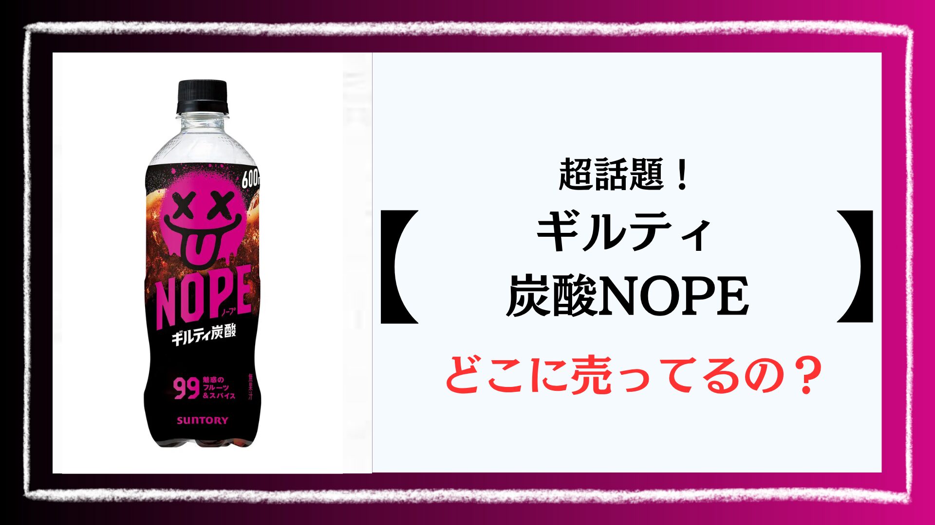 ギルティ炭酸NOPEは、サントリー食品インターナショナルが2026年3月24日に発売した話題の新感覚炭酸飲料です。99種以上のフルーツ&スパイスフレーバーをブレンドした”やみつき”になる甘濃い味わいが特徴で、発売1週間で2,000万本を突破するほどの大ヒット商品です。