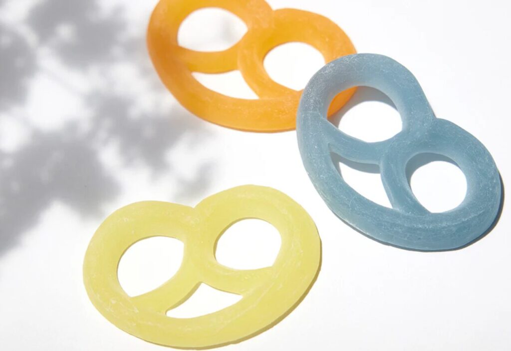 プレッツェルの形をモチーフにしたユニークなフォルムと、フルーツの色をイメージしたカラフルな見た目が特徴です。