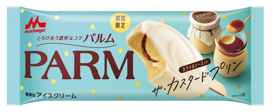 「パルム」らしいなめらか食感のアイスの中に、濃厚で香ばしいカスタードプリンの味わいがぎゅっと詰まっています。