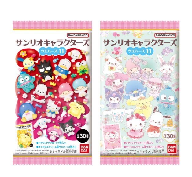 サンリオキャラクターズ ウエハース11は、全30種類のカードがランダム封入されており、開封するまでどのデザインが入っているか分からないワクワク感が楽しめるシリーズです。