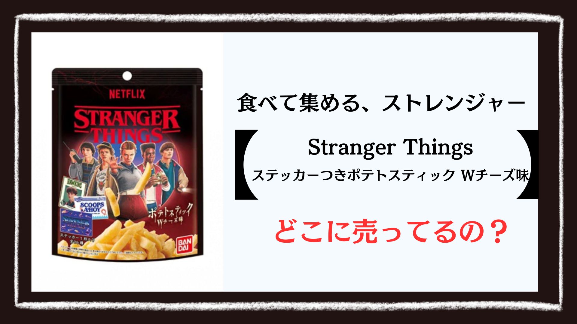この記事を読めば、Stranger Things ステッカーつきポテトスティック Wチーズ味をスムーズにゲットできます♪